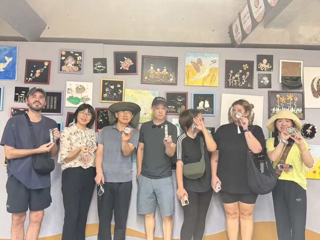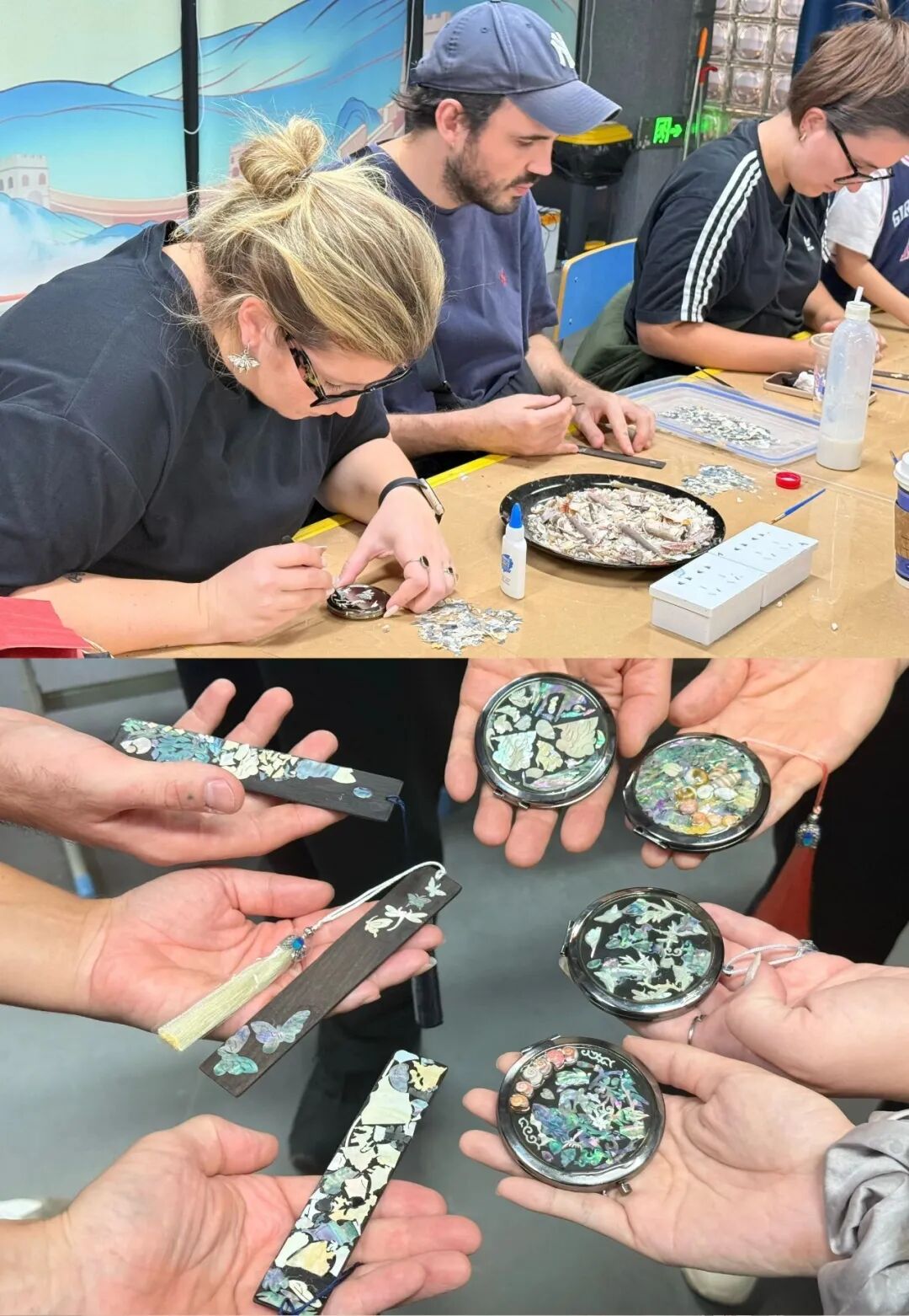在东海贝雕博物馆,外教们亲身体验省级非遗项目——贝雕制作,感悟乡村手工业将海洋物产转化为艺术品的文化创造力。