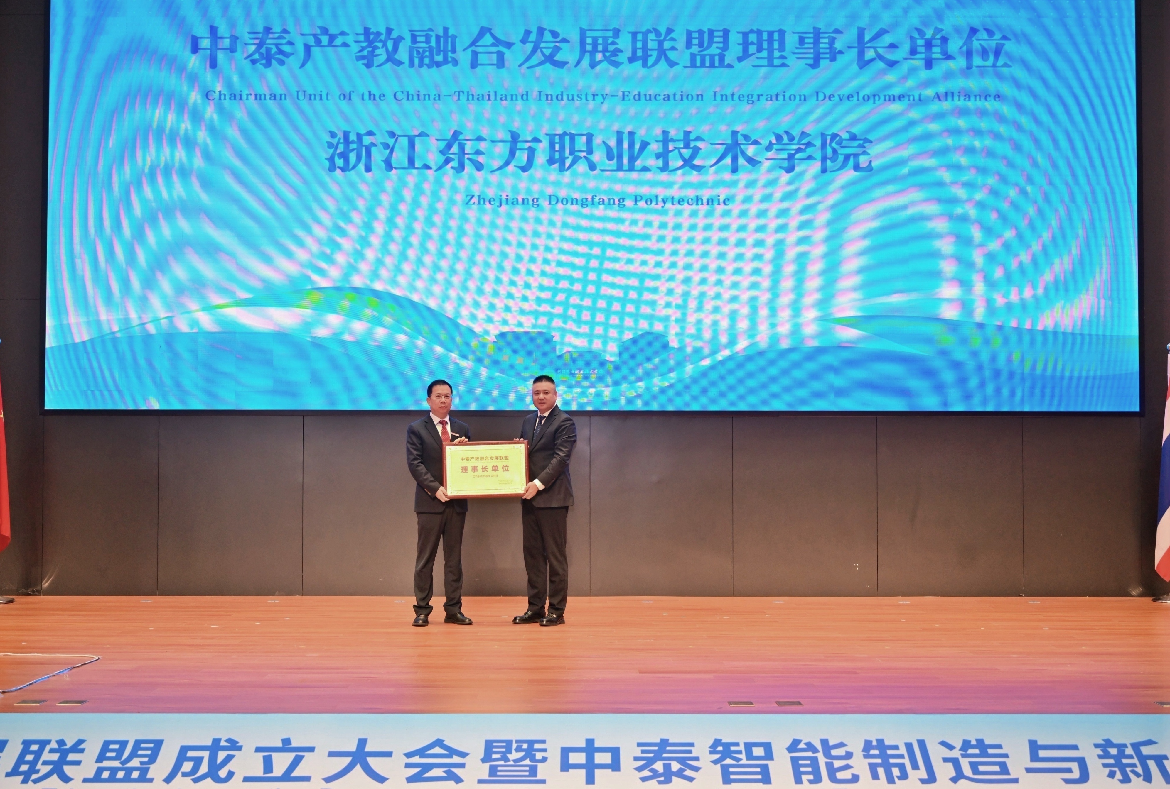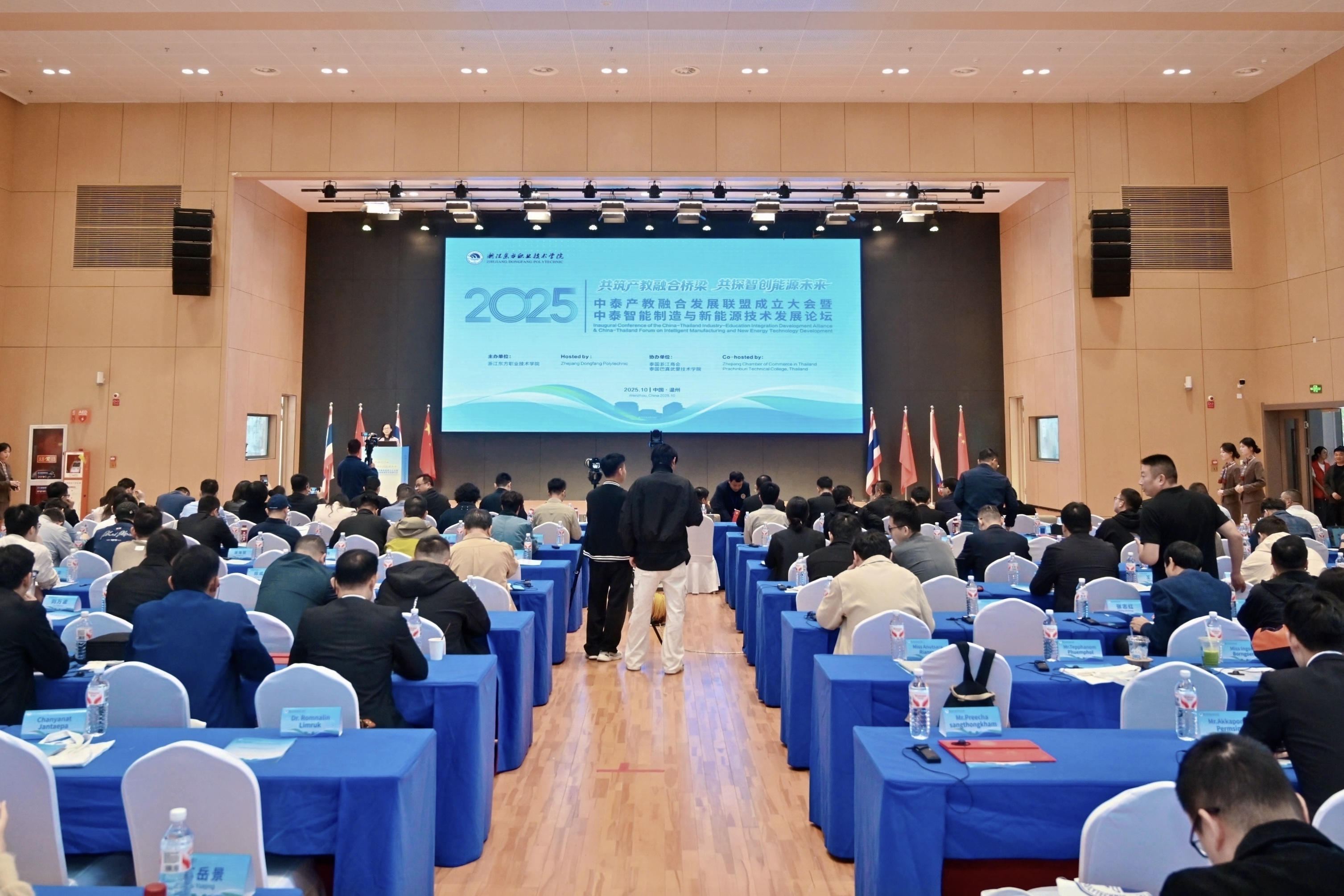 10月31日,2025中泰产教融合发展联盟成立大会暨中泰智能制造与新能源技术发展论坛在浙江东方职业技术学院举办。泰国教育部职业教育委员会合作部部长Mr.Tanapat Saengchan,温州市委教育工委专职副书记张维凯,温州市外事办公室党组成员陈进,泰国浙江商会副会长董锋,浙江东方职业技术学院校长、党委副书记王佑镁等领导出席,中部三区职业教育中心Mr.Bunlue Tongkeatkeaw主任、泰国夜功技术学院校长Arun Klueanphan等14位校领导线上与会,来自中泰两国职业教育领域的政府代表、院校领导、专家学者及企业代表等180余人齐聚一堂,共筑产教融合桥梁,共探智创能源未来,为中泰建交50周年增添务实合作新注脚。
