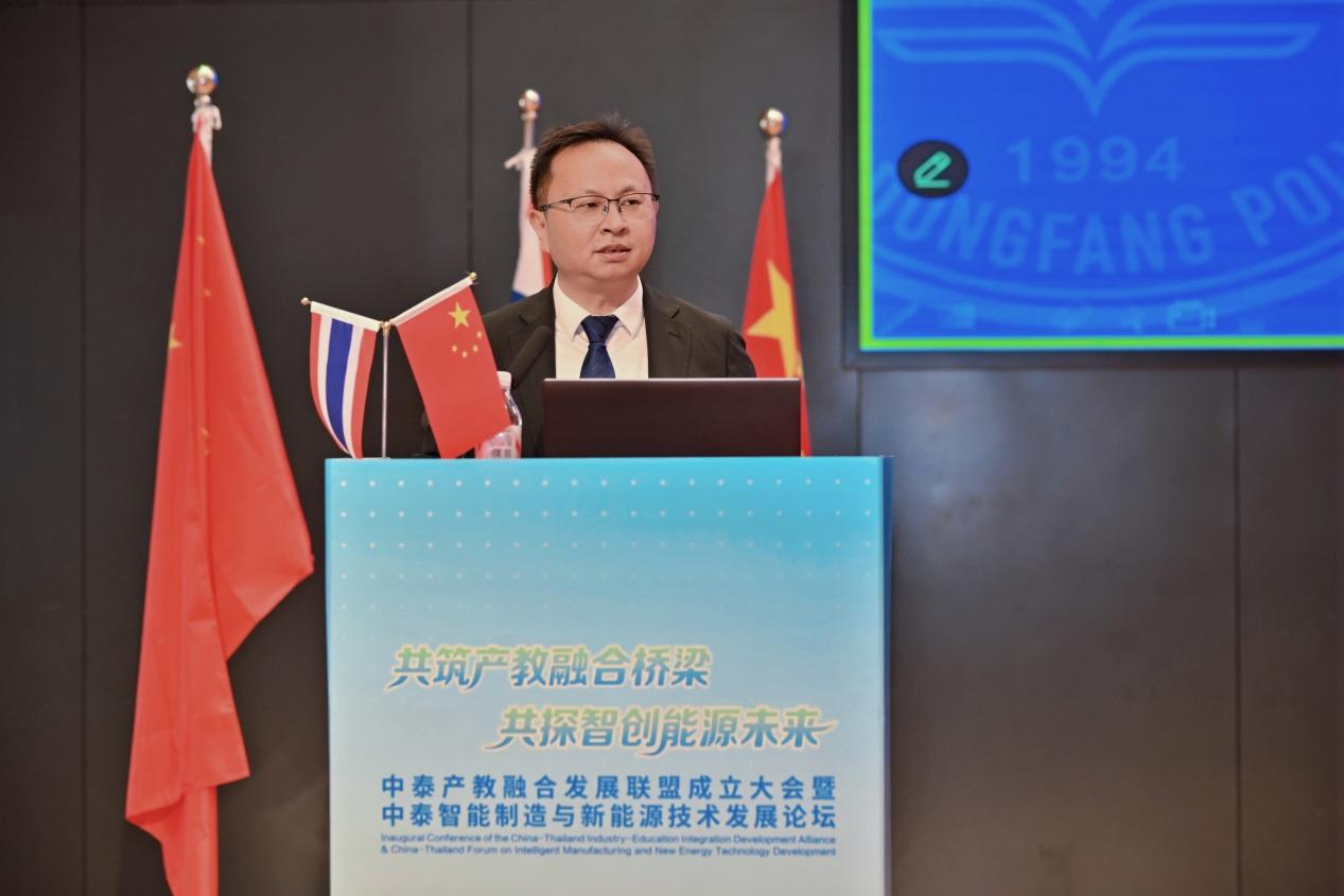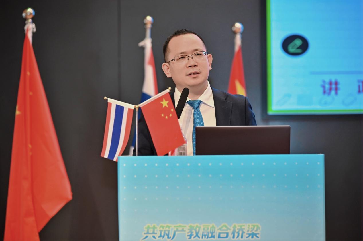 宁波职业技术大学翟志永教授以“全球智能制造与新能源技术发展趋势”为题,解析两大领域深度融合趋势,建议中泰依托中国技术优势与泰国产业需求,在智能电网、绿色工厂领域打造合作标杆;浙江东方职业技术学院张小冰教授分享中泰新能源丝路学院成果,其推动的专业与课程标准获泰认证,形成可复制范式并辐射巴基斯坦,连续两年获泰方职教合作奖项;泰国夜功技术学院Arun Klueanphan校长线上分享本土经验,提及与中方联合开发双学历课程,期待通过联盟引入更多中国实训资源。泰国丰盛发网业有限公司董锋董事长结合泰国人才需求,提出企业协会需转型成为资源整合者,搭建技术平台、组建标准委员会,同时强调法律合规重要性;唐风国际教育集团庄雷总裁梳理中泰“210工程”进展,介绍当前试点专业与云平台服务情况,规划未来专业合作及奖学金设立等事宜,描绘中泰新能源人才培养合作的未来蓝图。