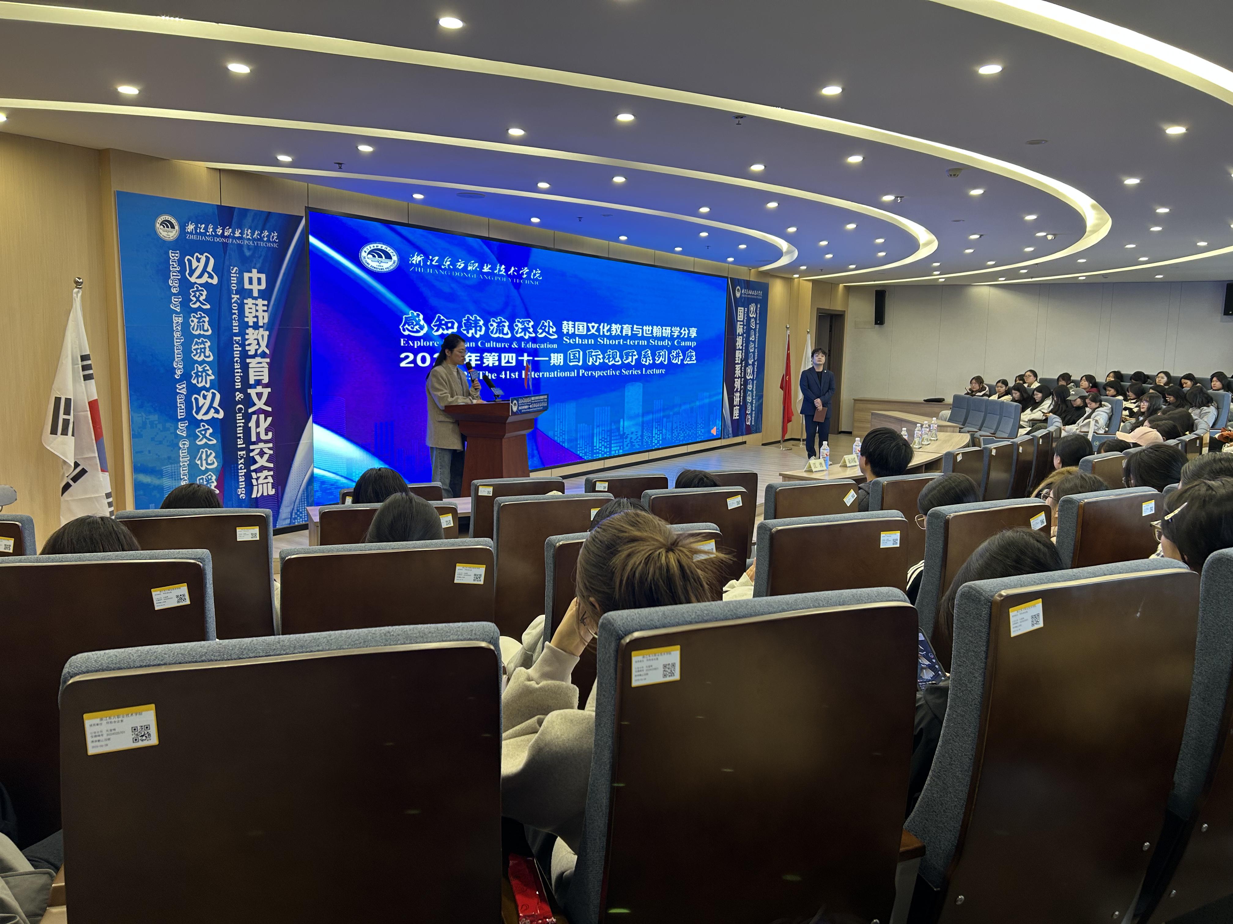 研讨会后,韩国世翰大学国际交流院外事科主任文芝河结合自身在韩国文化教育及研学领域的积淀,带来以“感知韩流深处:韩国文化教育与世翰研学分享”为主题的第四十一期“国际视野系列讲座”。带师生跳出“韩流”表层认知、探析其文化教育根基,并结合案例介绍世翰大学研学项目。分享兼具学术性与实用性,有效拓宽了师生国际视野与行业认知。