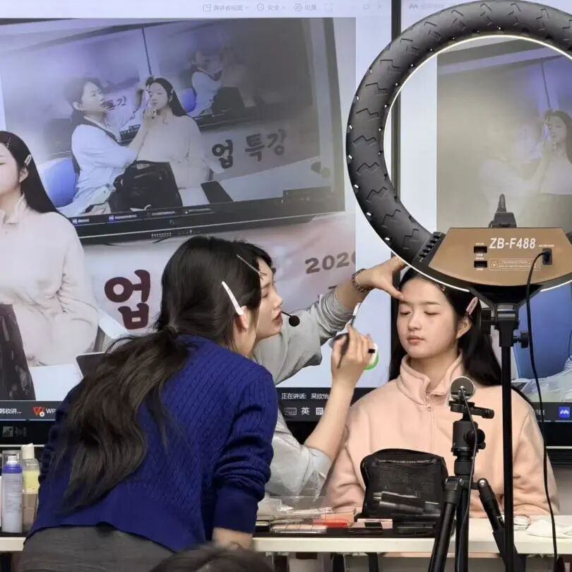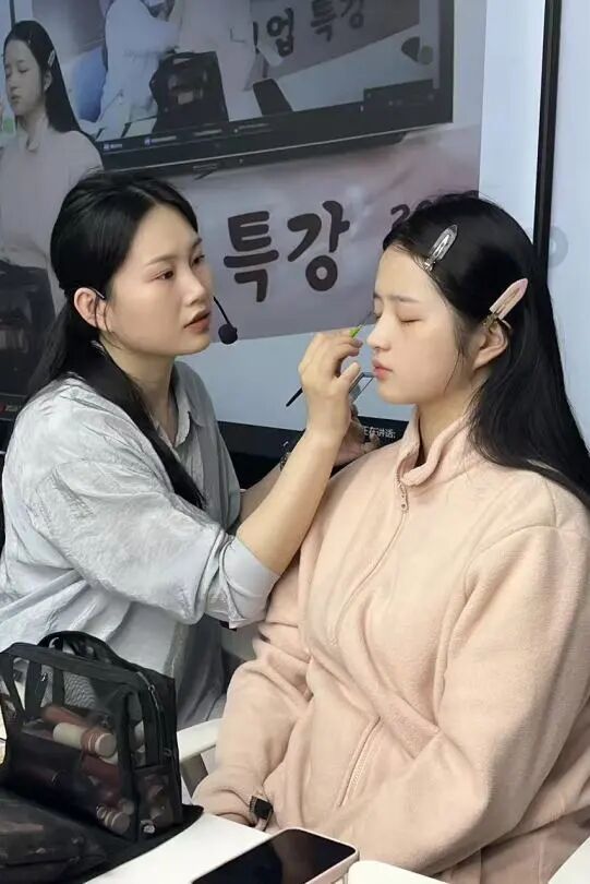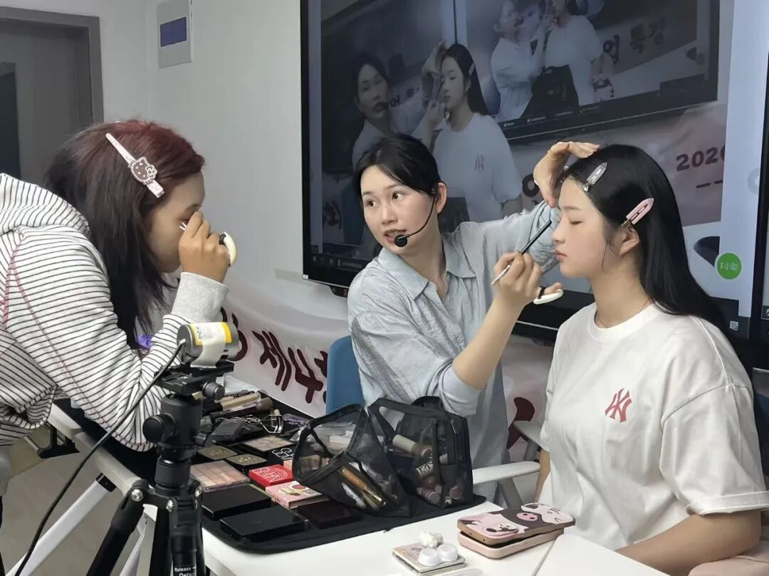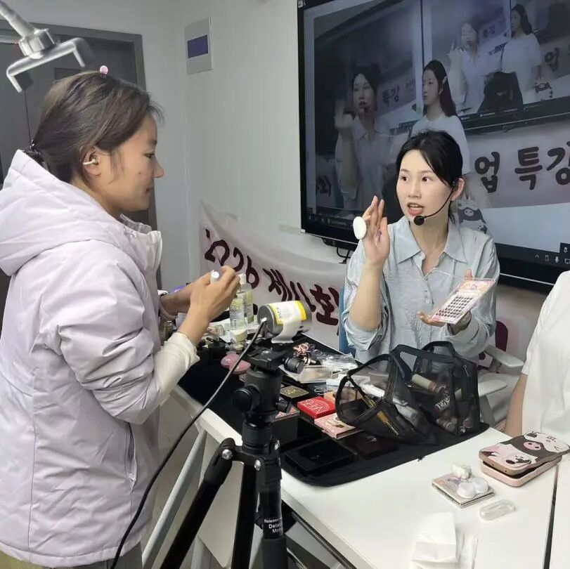 活动伊始,王琼老师围绕韩式日常清透妆特点,重点讲解了适配校园与日常出行的清透自然妆造逻辑,帮助大家理清化妆思路,摆脱厚重妆感困扰。